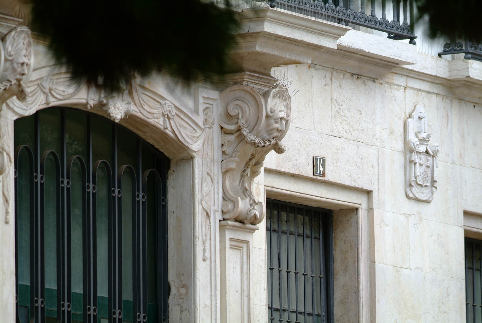 Entre as portas centrais, na fachada principal, é possível observar uma interessante pedra de armas com o brasão da família Allen. Estima-se que a primeira dona do Palácio da Regaleira, desde que há memória, terá sido Ermelinda Allen Monteiro d’Almeida, 1ª baronesa e viscondessa da Regaleira, ou que tenha sido herdado directamente dos seus pais.